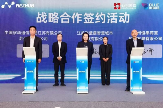 活動現場恒泰商置、江蘇海藍居與中國移動達成深度戰略合作簽約三方將以NEXHUB為核心載體,在數字基礎設施建設、AI創新服務落地、創業生態完善等方面深度協作,共同打造蘇州聯合辦公領域的標桿典范。
