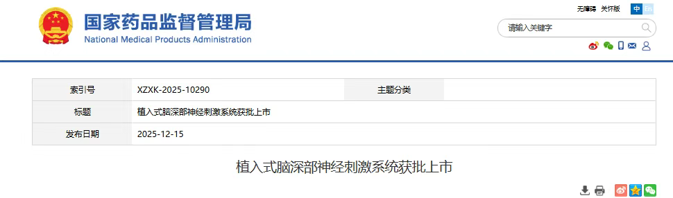 12月15日,國家藥監局發布信息顯示景昱醫療科技(蘇州)股份有限公司(以下簡稱“景昱醫療”)的植入式腦深部神經刺激系統獲批上市。