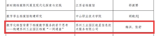 近日,2023 年全國青年檔案工作者學(xué)術(shù)論壇征文評選結(jié)果發(fā)布,蘇州市 8 篇論文獲獎(jiǎng)。其中,園區(qū) 2 篇論文分別獲評一等獎(jiǎng)和二等獎(jiǎng),占全市的1/4,居全市第一。
