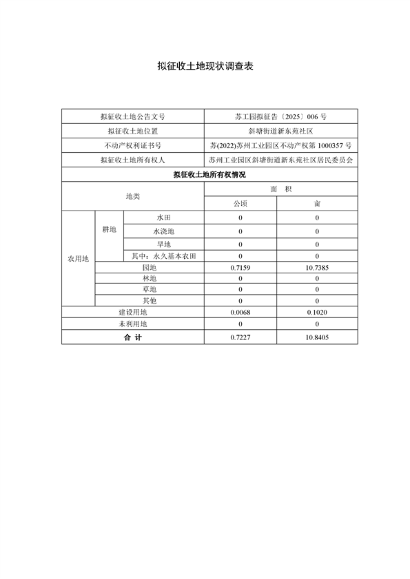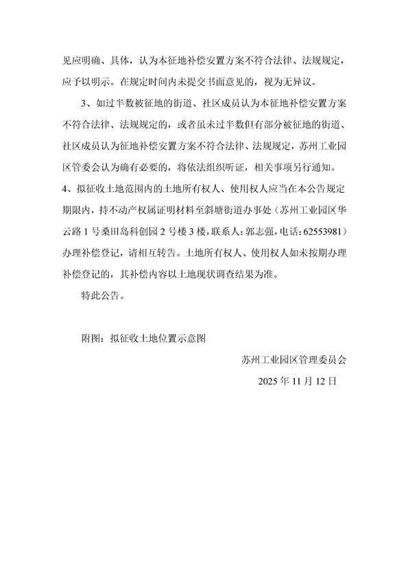 蘇州工業園區管理委員會征地補償安置方案公告(蘇工園征補安置〔2025〕008號)
