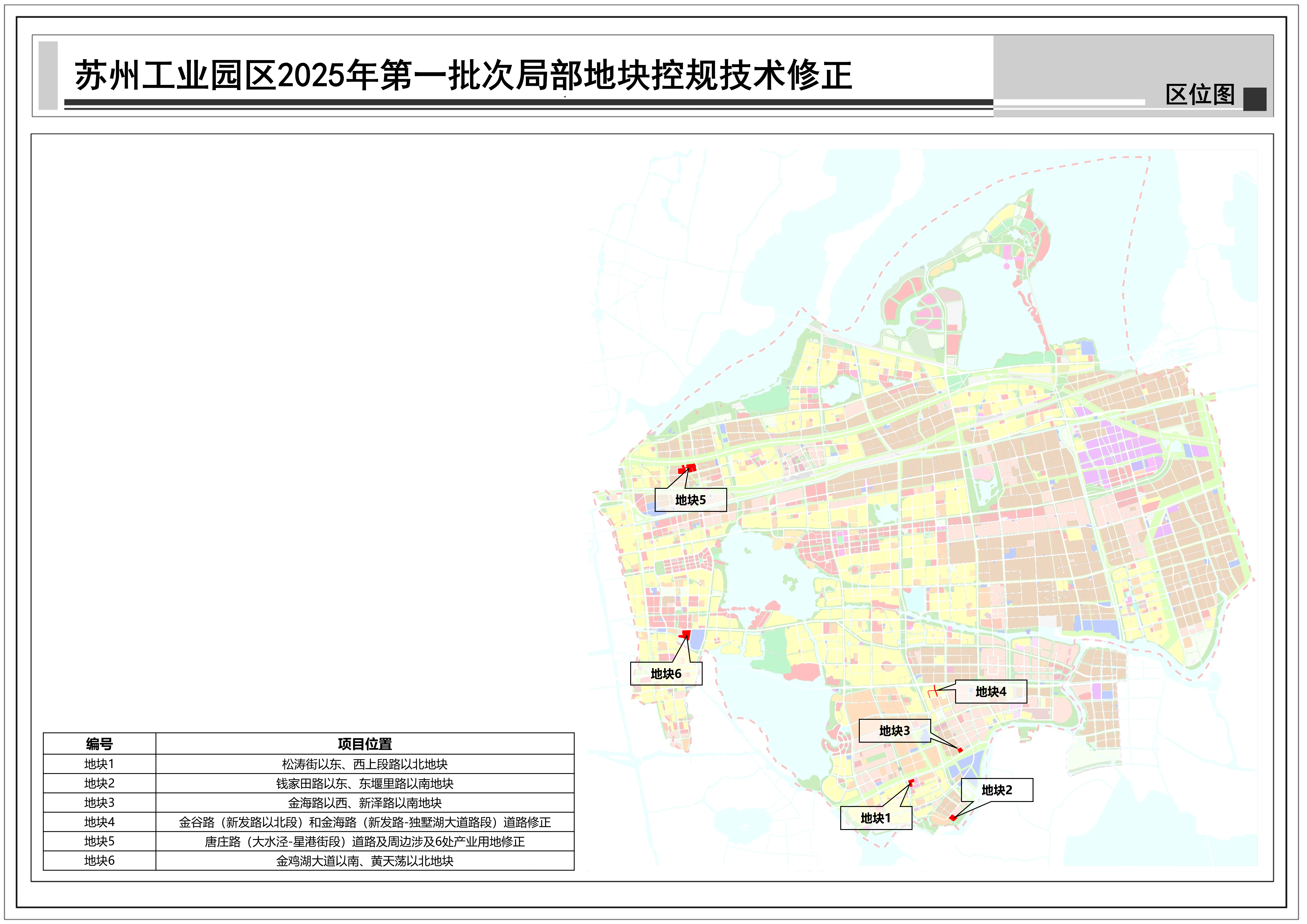 蘇州工業園區2025年第一批次局部地塊控規技術修正:共包括6個地塊,總用地面積約0.29平方公里,詳見附圖區位圖。