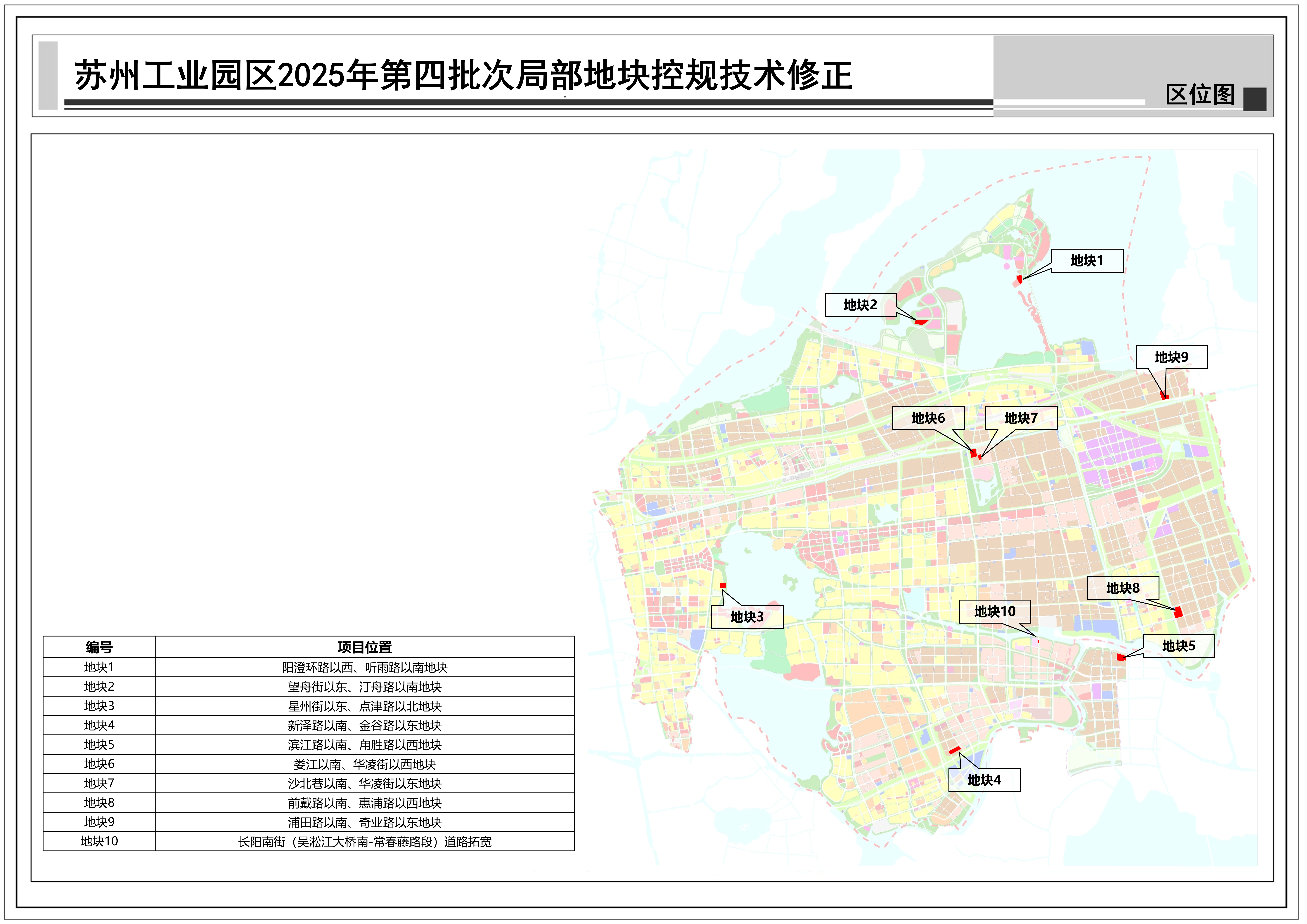 蘇州工業(yè)園區(qū)2025年第四批次局部地塊控規(guī)技術(shù)修正:共包括10個(gè)地塊,總用地面積約0.39平方公里,詳見(jiàn)附圖區(qū)位圖。