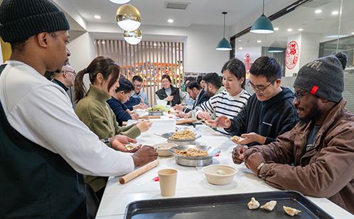 SKEMA蘇州分校では、フランス、ロシア、カメルーン共和國(guó)などの國(guó)からの40名の留學(xué)生は一堂に會(huì)し、沒(méi)入型で「福」の漢字を書(shū)き、餃子を作ることを體験し、春節(jié)にいっぱい特別感を添えた。