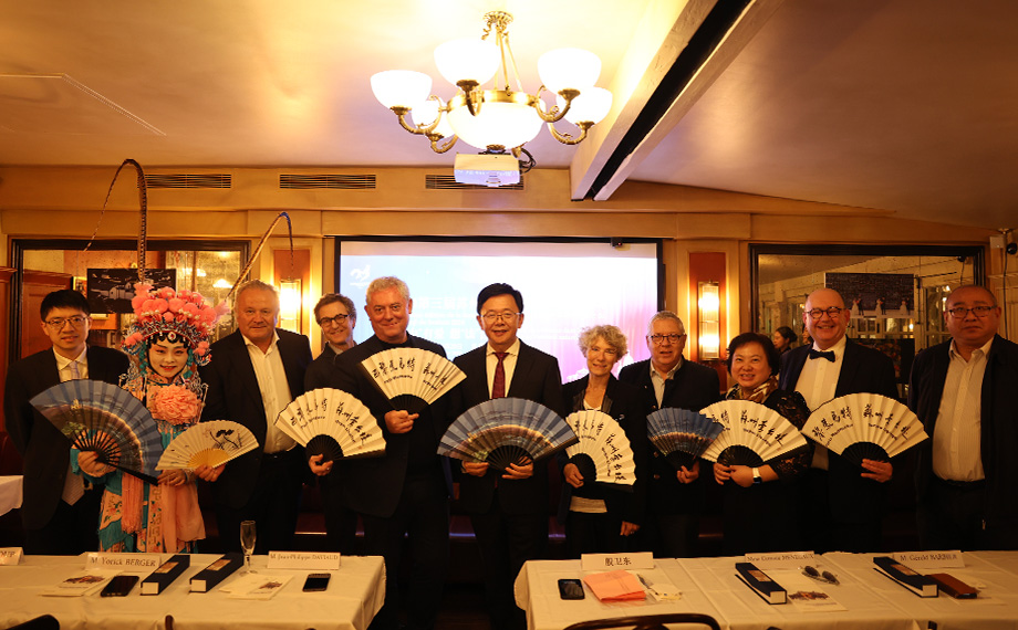 當地時間10月11日晚,在中法雙方的共同見證下,2024第三屆蘇州金雞湖中法文化藝術周在巴黎蒙馬特街區拉開帷幕。巴黎十八區政府議員M.Jean Philippe DAVIAUD、巴黎旅游會展局局長Mme.Corinne Menegaux、法中合作交流協會會長M.Yorick BERGER、蒙馬特商會會長M.Frédéric LOUP、法國泰勒藝術家基金會主席M.Jean Fran?ois LARRIEU等領導和嘉賓出席了活動。來自巴黎十八區政府、巴黎會展旅游局和巴黎高校、博物館、銀行、投資基金、文旅企業的一百多位嘉賓共聚一堂,共話交流與合作。活動由蘇州工業園區文體旅游局和巴黎旅游會展局共同主辦,新建元集團圓融發展公司、蘇州工業園區公共文化中心、蘇州工業園區文化產業招商中心、蒙馬特商會和法中合作交流協會共同承辦。