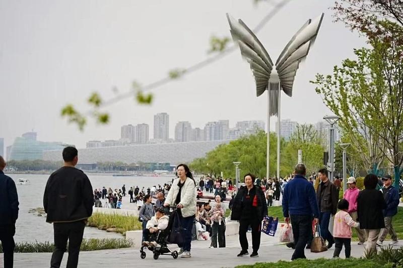 文明是城市的耀眼底色。清明小長假,蘇州城市街頭迎來市民游客交織的熱鬧景象。正是春和景明時,美麗的自然風(fēng)景是城市給予市民游客的禮物;而漫步城市間,從景區(qū)到公共場所,市民游客的文明舉止、禮貌言行則是另一道靚麗風(fēng)景,彰顯了游人對蘇州的熱愛,成為城市可觸可感的美好記憶。金雞湖右岸,絡(luò)繹不絕的人流彰顯出這一新晉“頂流”對市民游客的巨大吸引力。作為蘇州新的城市地標(biāo),“蘇州之眼”摩天輪在小長假期間迎來一波“大流量”,其以充滿科技感、現(xiàn)代感的體驗,讓游人感受蘇州的現(xiàn)代發(fā)展和浪漫情懷。傍晚時分,來自常州的吳女士一家正有序排隊,等待“登艙”。“前段時間‘蘇州之眼’在小紅書特別火,趁著假期趕緊來打卡,而且特意選擇了可以在摩天輪上看日落的時段。來之前還擔(dān)心人多擁擠,但現(xiàn)場大家排隊非常有序,工作人員也很周到熱情,體驗感蠻好的。”與“蘇州...