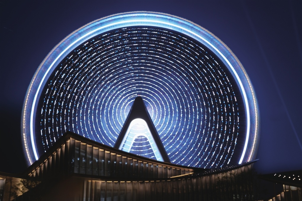 昨日,用相機(jī)慢門記錄下的園區(qū)“蘇州之眼”摩天輪格外迷人。(視覺蘇州供圖)