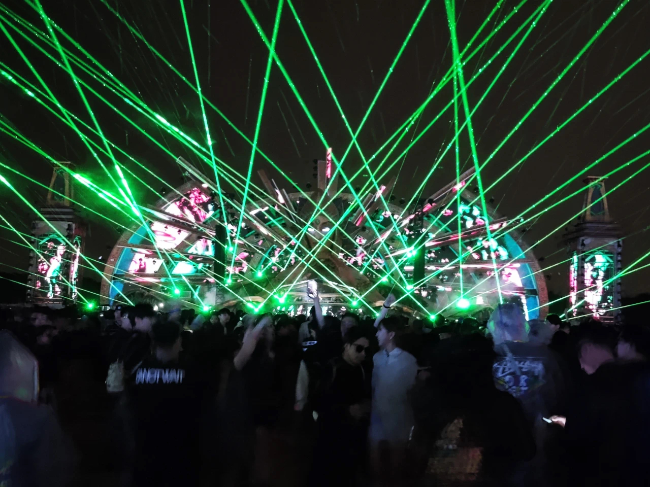 全球頂尖團隊設計的日升女神kineticFIELD主舞臺,通過精密機械實現女神雙臂隨樂律動,配合激光、火焰與同步煙花,首日便誕生百萬級傳播的“女神”名場面。circuitGROUNDS舞臺以360度巨型LED墻構建科技矩陣,stereoBLOOM舞臺以前衛工業風見證多位國際大咖中國首秀,boomboxARTCAR移動舞臺則以“巨型音箱”造型引爆隨行狂歡。