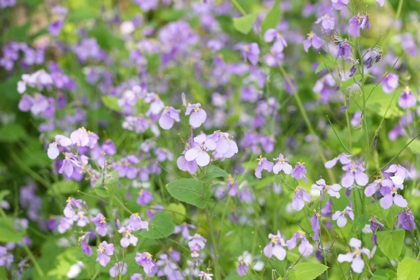 成片的二月蘭盛開時如同一片紫色的海洋,在春風中起伏蕩漾,充滿了神秘與浪漫的氣息。