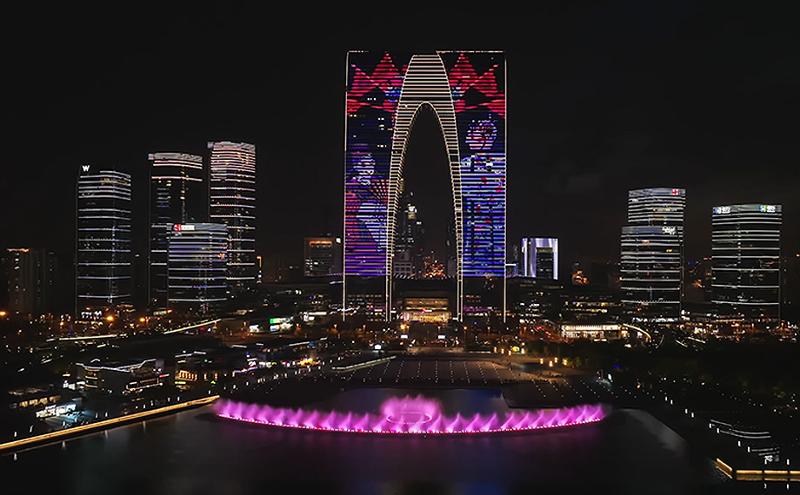 與“蘇州之眼”隔湖相望,金雞湖音樂噴泉作為蘇州旅游的傳統(tǒng)“打卡”項目,同樣讓人流連忘返。