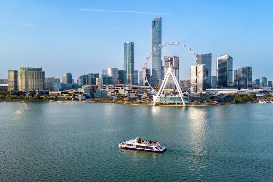 今年,伴隨著“蘇州之眼”的驚艷亮相,由新時代集團精心打造的“金雞湖號”雙體游船與右岸新航線也華麗登場。