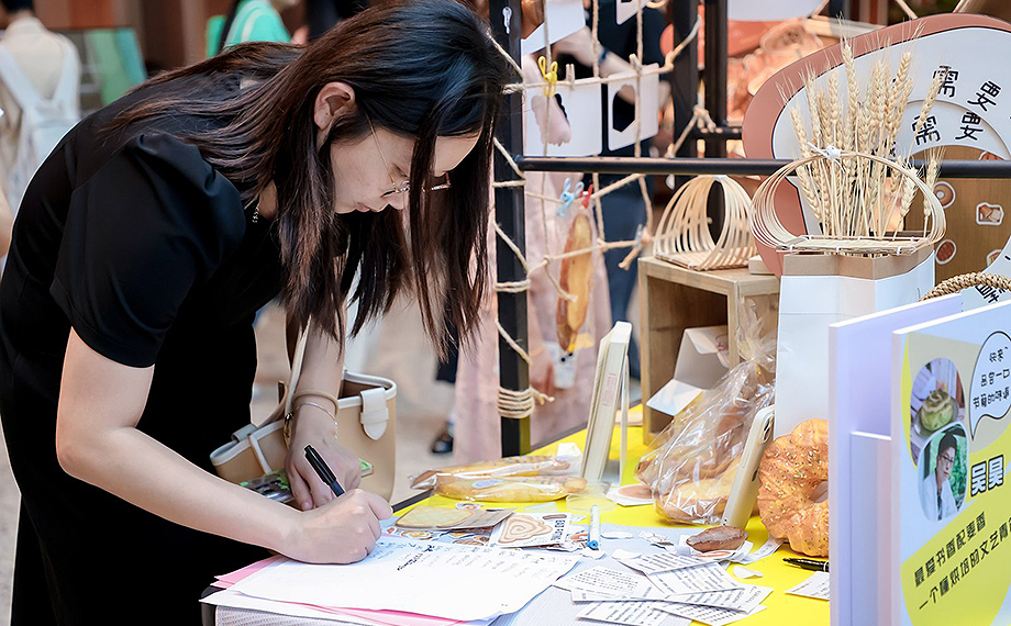 巴斯克蛋糕、窯烤堿水球、德腸面包……在空山手作拆“”包展位上,香與面包香完美交融。來往市民只需現(xiàn)場寫下心中關(guān)于閱讀與美食的奇思妙想,就能領(lǐng)取一份“”包,開啟味蕾的神奇之旅。空山手作主理人吳昊是一位愛閱讀、懂烘焙的文藝青年,在他看來,麥香與香有著殊途同歸的默契。“面包滿足口腹之欲,閱讀充盈精神世界,拆‘’包將二者有機結(jié)合,為大家提供雙重體驗。在品嘗美味面包的同時,還能盡興閱讀各種籍,同時獲得精神的補給。”