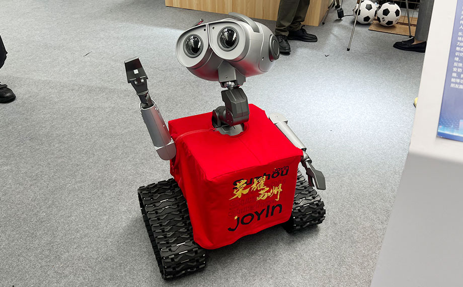身著活力滿滿的紅色應援服,曾作為蘇超機器人領隊、并在中場表演中展示魅力的明星機器人WAWA擺動手臂,一邊移動一邊與圍觀的觀眾打著招呼。“該款機器人由樂享科技自主研發,搭載的意識仿生模型能精準感知用戶情緒并以豐富肢體語言互動,同時還集穩定拍攝、功放、充電儲能于一體,是家庭陪伴、院落安防、戶外露營的智能伙伴。”樂享科技相關負責人介紹,作為蘇超蘇州賽區官方機器人合作伙伴,展會現場,觀眾關注公司公眾號,掃描二維碼即可參與預售活動,前1000名客戶還將獲得定制化激光刻印、專屬名牌等大禮包。