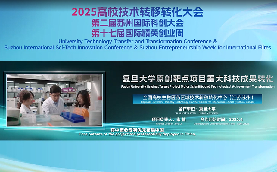 7月10日,2025高校技術(shù)轉(zhuǎn)移轉(zhuǎn)化大會暨第二屆蘇州國際科創(chuàng)大會、第十七屆國際精英創(chuàng)業(yè)周系列活動在蘇州國際博覽中心開幕。會上發(fā)布全國高校區(qū)域技術(shù)轉(zhuǎn)移轉(zhuǎn)化中心(江蘇)成果轉(zhuǎn)化重大案例,其中,全國高校生物醫(yī)藥區(qū)域技術(shù)轉(zhuǎn)移轉(zhuǎn)化中心(江蘇蘇州)(以下簡稱“蘇州生物醫(yī)藥分中心”)兩個案例入選,合作金額超2.2億元。