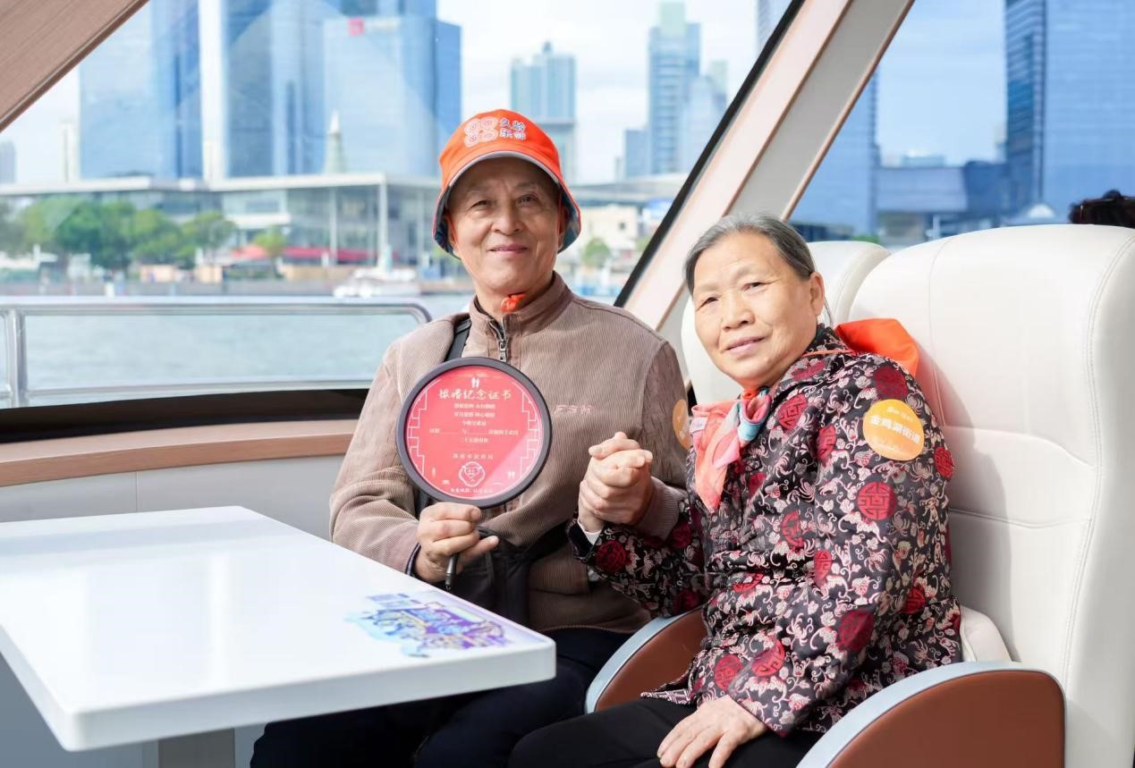 活動中,園區(qū)16對金婚、銀婚夫婦攜手漫步13.14公里的環(huán)金雞湖步道,以腳步丈量城市變遷,用相伴詮釋“一生一世”的深情。從望湖閣的游船體驗,到月光碼頭邊的閑話家常,再到飛翔雕塑前的合影留念,老人們一路親近自然,一路見證園區(qū)日新月異的發(fā)展圖景。登臨“蘇州之眼”摩天輪,老人們俯瞰園區(qū)全貌,大家紛紛感嘆:“現(xiàn)在的園區(qū)越來越國際化,每次來都有新驚喜!”
