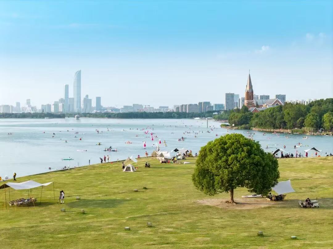 獨墅湖以“讓我們蕩起雙槳”為主題,用動感體驗、人文書香點燃科創之地的青春活力。今年夏天,劃槳板、吹湖風、追日落成為獨墅湖上的新風景,也讓獨墅湖成為年輕人揮灑活力、釋放激情的潮流目的地。嘉年華期間,獨墅湖高校槳板爭霸賽、金秋龍舟賽等水上活動項目將陸續展開。園區特色文旅IP“右岸秋月夜”也將走進一棵樹營地,再現臺上臺下共鳴、萬人合唱的經典場景。獨墅湖教堂的莊嚴、白鷺園的多彩……讓游客充分感受四季之美、人文之美,悠享舒適。