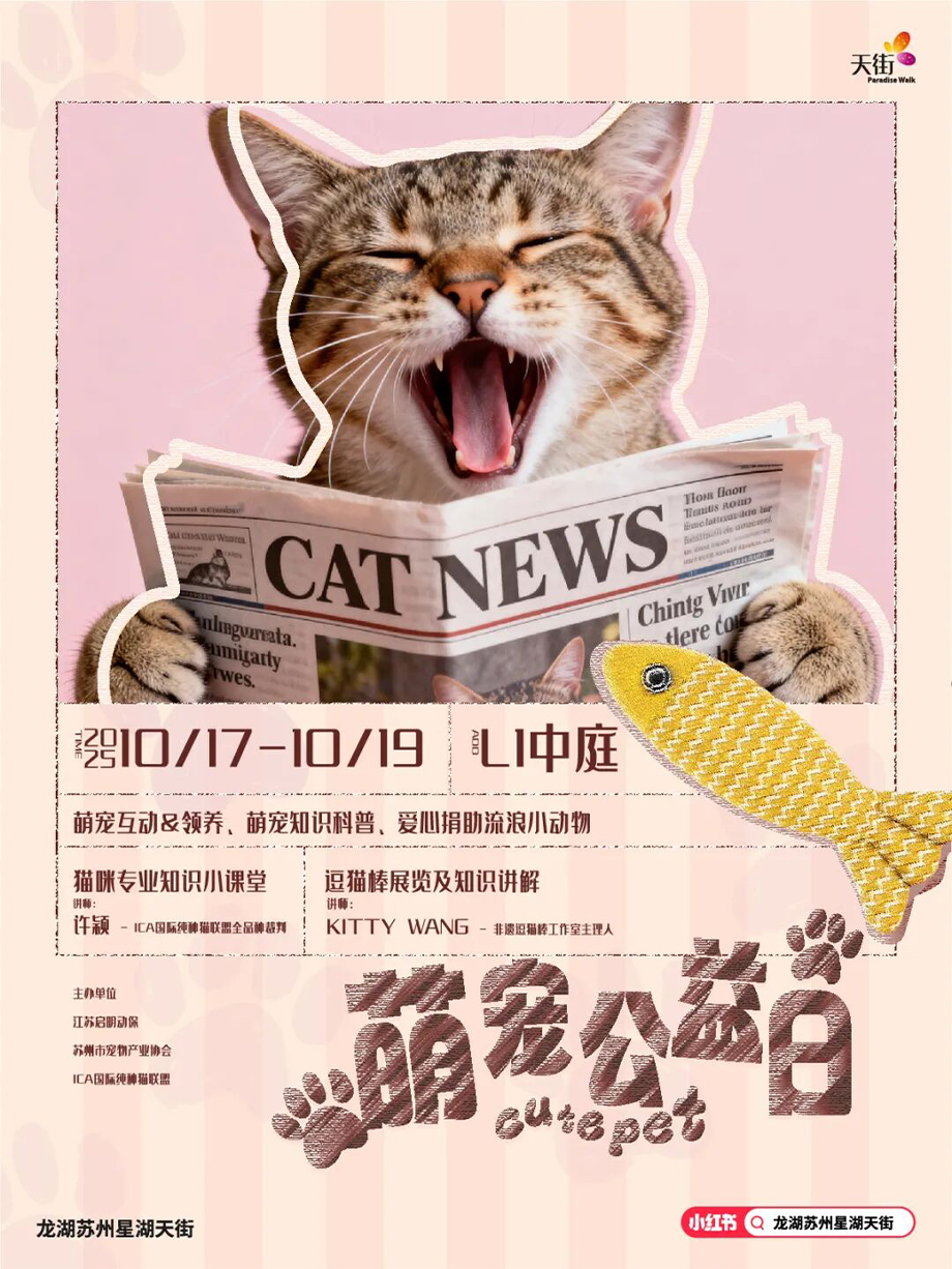 此外,10月17日—19日,星湖天街萌寵公益日活動(dòng)也在星湖天街優(yōu)衣庫(kù)中庭同步上線。萌寵互動(dòng)&領(lǐng)養(yǎng)、萌寵知識(shí)科普、萌寵愛(ài)心捐助等活動(dòng)等你參與,還有ICE國(guó)際裁判現(xiàn)場(chǎng)授課貓咪的專(zhuān)業(yè)知識(shí),以及非遺逗貓棒工作室主理人帶來(lái)逗貓棒展覽及知識(shí)講解。