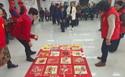另一份來自街道就業公司養老服務中心的禮物,則在綜合為老服務南部中心被悄然打開。老式爆米花爐“嘭”的一聲脆響,瞬間喚醒了老人們沉睡的味蕾;非遺傳承人現場制作傳統小吃,香甜的氣息勾連起幾代人的往昔回憶。傳統手藝互動區前,長者們圍坐案前揮毫潑墨,提筆落筆間,橫豎撇捺蒼勁舒展,祝福在紅紙上蜿蜒;趣味游戲區內,大家組隊參與,手持套圈重拾童趣,歲月的褶皺漾輕松與愜意的笑顏。最后暖心文藝展演環節,長輩們齊唱耳熟能詳的老歌,用熟悉的旋律奏響時代記憶,讓濃濃的新春暖意縈繞全場。