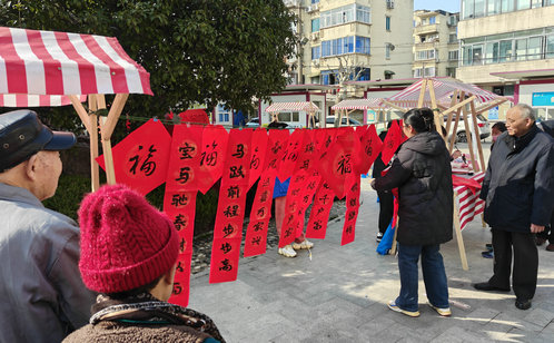 其中最動人的風景莫過于筆墨丹青帶來的紅火與祝福。葑誼社區的書法愛好者們揮毫潑墨,一幅幅筆力遒勁的春聯、一張張滿載祝愿的“福”字,被免費送到居民手中,傳遞著樸素而真摯的鄰里情誼。官瀆社區則由社區書畫社的志愿者現場根據居民喜好“定制”春聯,無論是經典佳句還是貼近生活的暖心話語,都在墨香中化為一份份獨一無二的祝福。而在蘇安南社區,書寫更添一份溫馨——“親子寫福”區域里,孩子們在家長的陪伴與指導下,認真寫下或許稚嫩卻充滿心意的一筆一劃,簡單的互動中傳遞著家人間的親情