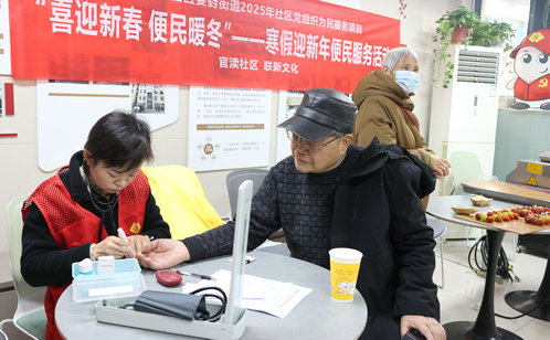 便民服務活動中不可或缺的“重頭戲”。官瀆社區的市集上,免費測量血壓、血糖的攤位前人頭攢動,志愿者耐心地為居民測量指標并講解冬季養生知識。幾步之遙便民磨刀磨剪服務深受歡迎,在志愿者嫻熟的手法下,銹鈍的刀具重現鋒芒,切實解決了居民生活中的小難題
