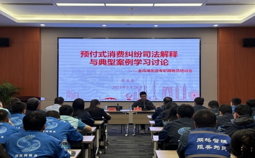 為進一步提升基層治理效能,增強網格員快速識別風險和化解預付式消費糾紛的能力,切實維護消費者合法權益,近日,蘇州工業園區金雞湖街道特邀蘇州工業園區社會治理現代化指揮中心俞聰開展《最高人民法院關于審理預付式消費民事糾紛案件適用法律若干問題的解釋》(以下簡稱《解釋》)專題培訓會,街道社會治理辦公室相關條線人員及全體專職網格員參會。