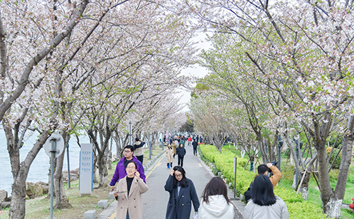 區內企事業單位職工和周邊市民齊聚在獨墅湖櫻花大道,共同解鎖這場櫻花下的奇趣之旅。