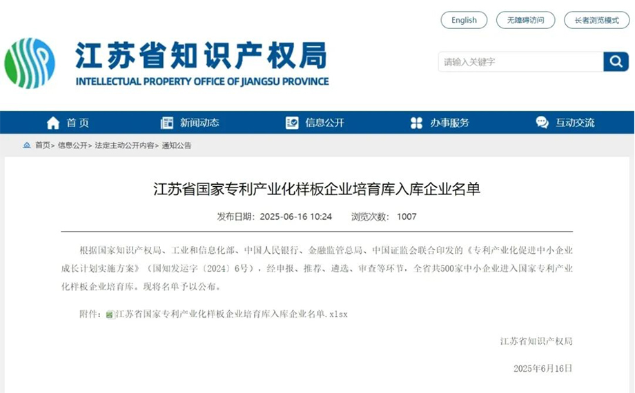 度假區鼎納入選江蘇省國家專利產業化樣板企業培育庫