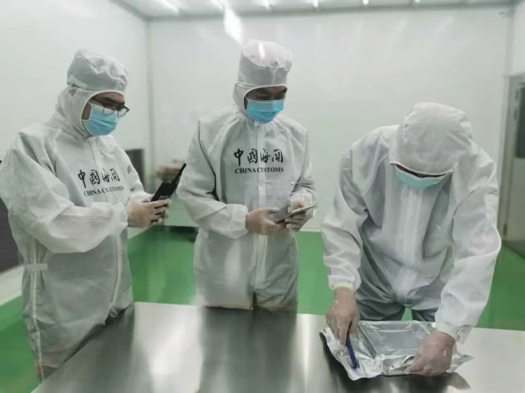 以三星電子(蘇州)半導(dǎo)體有限公司為例,其進口的晶圓和存儲芯片內(nèi)包裝為真空包裝,必須在無塵環(huán)境下開拆。若在普通環(huán)境下操作,灰塵、潮濕空氣或靜電極易導(dǎo)致元件損壞報廢,影響生產(chǎn)進度并帶來財產(chǎn)損失。該公司剛通過長三角一體化高新技術(shù)貨物布控查驗審批,對未來享受更便利、安全的通關(guān)服務(wù)充滿期待。