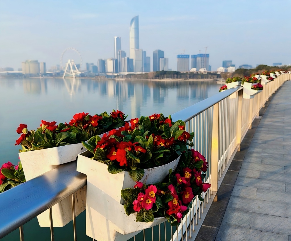 花藝造景的精致裝扮,讓園區(qū)的新春景致更顯靈動(dòng)多姿。市政集團(tuán)精心推進(jìn)節(jié)日掛花、造景工作,重點(diǎn)打造金雞湖大橋、金雞湖人行棧橋、蘇州大道及飛翔雕塑等核心點(diǎn)位的花藝景觀。造型別致的花藝裝飾與橋梁、道路、雕塑相映成趣,成為園區(qū)的新春打卡點(diǎn)。此外,園區(qū)草花已全面完成冬季養(yǎng)護(hù)更新,路口草花區(qū)域每日安排專人開(kāi)展巡視、澆水、修剪等管護(hù)工作,五彩斑斕的草花讓園區(qū)步步有景、處處生情。