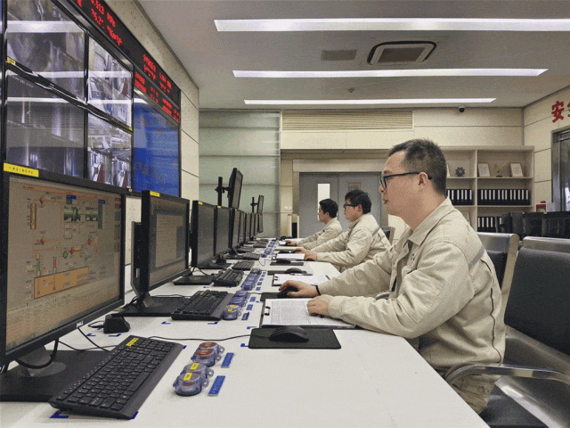 在這喜慶祥和的團(tuán)圓時(shí)刻,園區(qū)藍(lán)天燃?xì)鉄犭娪邢薰镜募厥覂?nèi)燈火通明,生產(chǎn)一線員工緊盯操作盤面,精準(zhǔn)調(diào)控機(jī)組;設(shè)備維護(hù)人員身著工裝、頭戴安全帽,細(xì)致檢查維護(hù)生產(chǎn)設(shè)備。