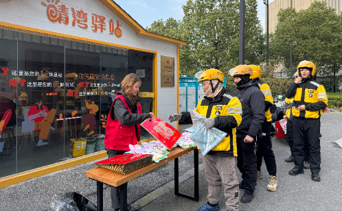 晴灣社區開展“冬送溫暖”主題活動,為新就業群體送上圍巾、暖寶寶、新春春聯等暖心物資。社區聯合醫護人員提供免費健康監測、冬季防護科普服務。社區工作人員與新業態從業者面對面交流,傾聽工作生活訴求,叮囑大家勞逸結合、注意安全,以務實舉措把關懷送到一線,讓寒冬更有溫度。此次活動作為社區“四季關愛”服務的重要內容,持續增強新業態從業者的歸屬感與幸福感。