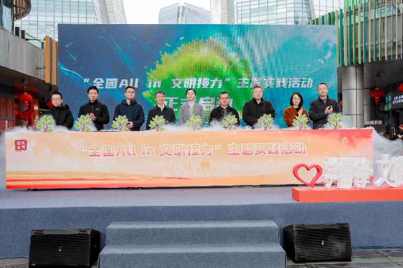 現場,“全園Allin文明接力”主題實踐活動正式啟動,將持續開展“樓宇文明共同體”“文明四季行”“寵愛有方”“家園守護者”等一系列文明實踐活動和項目,把雷鋒精神轉化為常態化的城市文明實踐,讓文明接力在園區各個角落傳遞。