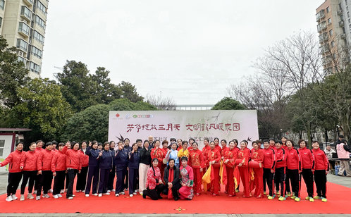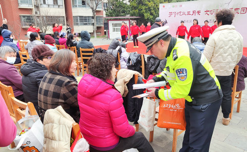 下午2時,法治廣場上人頭攢動,一場由社區阿姨們“挑大梁”的文藝匯演在這里熱鬧開場,為迎接“三八”國際婦女節營造歡樂氛圍。