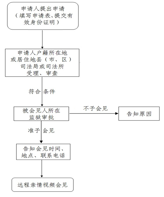 第八條:司法局收到親屬、監(jiān)護(hù)人遠(yuǎn)程幫教會(huì)見(jiàn)的預(yù)約申請(qǐng)后,應(yīng)當(dāng)認(rèn)真核實(shí)會(huì)見(jiàn)人身份,符合遠(yuǎn)程幫教會(huì)見(jiàn)條件的應(yīng)當(dāng)在兩個(gè)工作日內(nèi)將預(yù)約申請(qǐng)通過(guò)遠(yuǎn)程幫教會(huì)見(jiàn)管理系統(tǒng)轉(zhuǎn)送被會(huì)見(jiàn)人所在的監(jiān)獄。監(jiān)獄收到司法局審核后的預(yù)約申請(qǐng)后,應(yīng)當(dāng)在三個(gè)工作日內(nèi)作出準(zhǔn)予或不予會(huì)見(jiàn)的決定。準(zhǔn)予會(huì)見(jiàn)的,應(yīng)當(dāng)明確告知司法局會(huì)見(jiàn)人的人數(shù)及姓名、會(huì)見(jiàn)時(shí)間、地點(diǎn)安排等。司法局收到監(jiān)獄答復(fù)后,應(yīng)當(dāng)根據(jù)監(jiān)獄確定的會(huì)見(jiàn)日期和時(shí)間,及時(shí)通知會(huì)見(jiàn)人前來(lái)會(huì)見(jiàn),未批準(zhǔn)的,應(yīng)向會(huì)見(jiàn)人反饋原因。(一)被會(huì)見(jiàn)的在押服刑人員不屬于被暫停會(huì)見(jiàn)、禁止會(huì)見(jiàn)的情形;(二)在押服刑人員親屬、監(jiān)護(hù)人符合遠(yuǎn)程幫教會(huì)見(jiàn)的條件;(三)一般每月安排一次,每次不超過(guò)三人。當(dāng)月已到監(jiān)獄會(huì)見(jiàn),則不安排視頻會(huì)見(jiàn),特殊情況除外。(四)會(huì)見(jiàn)時(shí)間為工作日,一般安排在監(jiān)區(qū)會(huì)見(jiàn)日當(dāng)天進(jìn)行,特殊情況下經(jīng)監(jiān)獄批準(zhǔn)也可安排非會(huì)見(jiàn)日會(huì)見(jiàn)。每次會(huì)見(jiàn)時(shí)間不超過(guò)30分鐘。(五)會(huì)見(jiàn)申請(qǐng)批準(zhǔn)后,應(yīng)在約定的會(huì)見(jiàn)時(shí)間進(jìn)行會(huì)見(jiàn);會(huì)見(jiàn)人員在會(huì)見(jiàn)現(xiàn)場(chǎng)服從司法局、監(jiān)獄工作人員的管理。