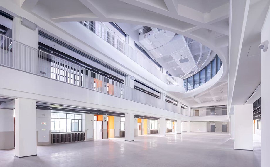The campus offers a diverse range of distinctive sports facilities, such as the circular running track on the first floor, an outdoor football field on the fourth floor, the rooftop running track on the fifth floor, and the indoor badminton court on the eighth floor.