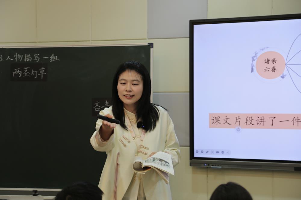 青劍湖小學張佳琦執教《人物描寫一組——兩莖燈草》一課,以情景化導入,實現單篇與整本文學經典的對接,通過提煉核心特征的詞語巧妙打通學生已有經驗與新知,在層層深入的多元活動中剖析作者選材的匠心獨具,為單元習作打下基礎。